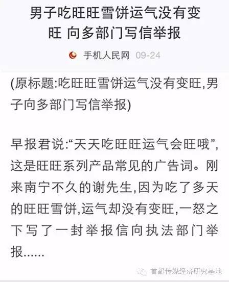1 第一個問題:舉報是否有理?廣告是什么?廣告是商家就產品或服務對消費者的承諾。提到承諾,其實最大的特點就是莊嚴和誠信。因此,廣告展現的是商家的產品力和誠信度。從這一角度而言,消費者對廣告的內容有所期待,自然也是情理之中的事情。而這一案例中,消費者的不滿和舉報,正是源于廣告內容與實際效果之間存在的巨大落差。從這一角度而言,旺旺廣告語“天天吃旺旺運氣會旺哦”確實有誤導消費者的傾向。消費者的不滿和投訴確實有充分的理由。謝先生只是在行使自己的權利,絕非無理取鬧。