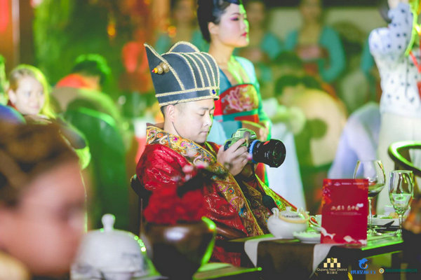 除夕夜當晚,達人們作為特邀嘉賓,出席了在大唐芙蓉園御宴宮舉辦的萬人千桌團圓宴主會場活動,換上了唐裝的達人們端坐在席間,欣賞著臺上的特色文藝表演,仿若真正穿越回盛唐的文人墨客。團圓宴現場還邀請到了來自全國各地的游客共度佳節。