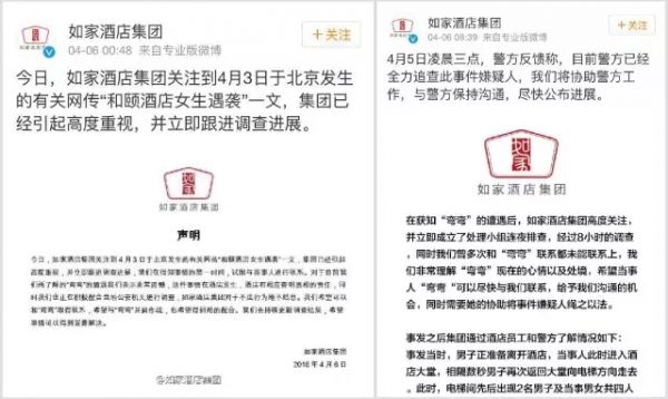 隨后如家酒店作出官方回應。但是,由于兩次聲明都過于生硬,反而招來了網友的譴責。