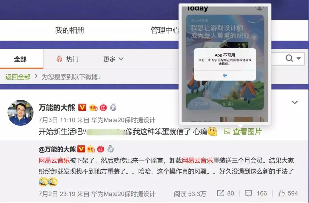 這件事情聽起來似乎有些不可思議,但確實還是有很多用戶中招,比如我在發(fā)微博說這件事情的時候就有粉絲出來說,自己確實傻乎乎的卸載了,而現(xiàn)在也確實裝不回來了,給自己的使用帶來了很多的不方便。所以說,雖然謠言還是那個謠言,但是這個手法確實非常新穎,可以說讓人防不勝防,辟謠都來不及。畢竟“造謠一張嘴,辟謠跑斷腿”,這對于網(wǎng)易云音樂和它的用戶來說都是一個很大的損失。而這種行為,不僅僅是壞,更有些陰損的味道,超越了行業(yè)競爭的底線。
