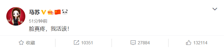 除了PGone發聲之外,馬蘇也發聲了。馬蘇發文稱:“臉真疼,我活該!”