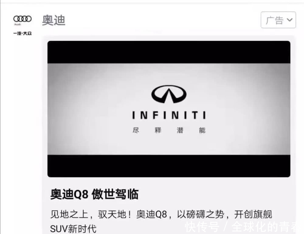 這是一個錯誤嗎?哪怕是錯誤,它也能發(fā)酵到各大網(wǎng)絡(luò)平臺,給客戶帶來意想不到的眼球效應。或許,英菲尼迪還在思考,下一步咱們是不是也需要做一波這一類宣傳?